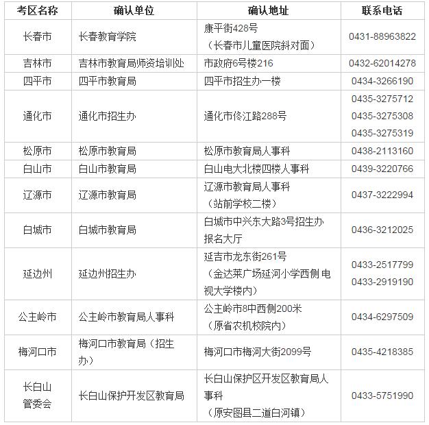 附件:吉林省2015年下半年中小学教师资格考试面试报名现场确认点