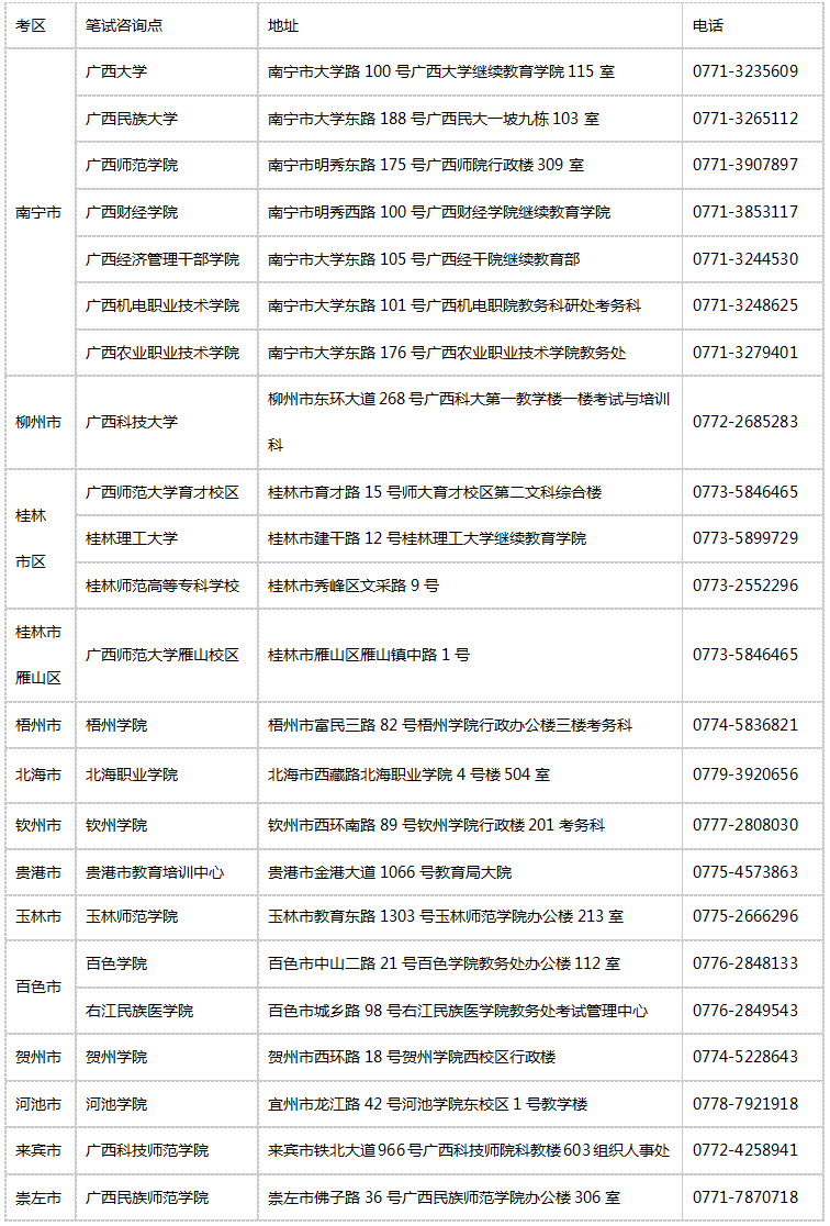附件:2.2016年上半年全国中小学教师资格考试广西考区笔试咨询联系表