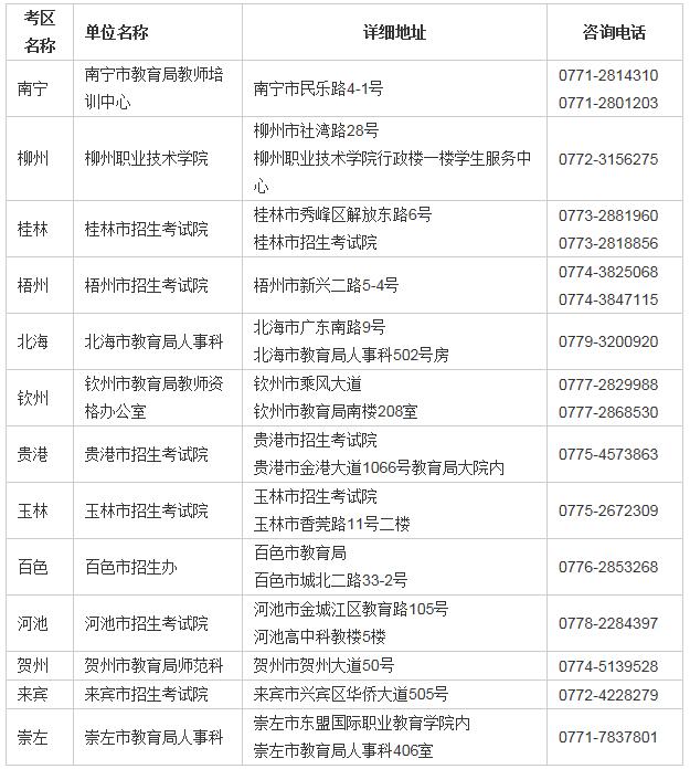 附件:1.2016年上半年全国中小学教师资格考试广西考区面试主管单位及咨询电话