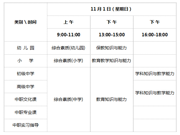 2015年下半年中小学教师资格考试(笔试)日程安排表