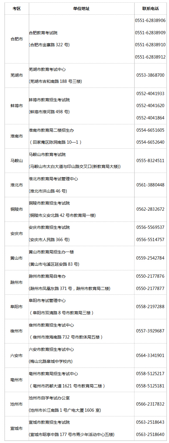政策咨询电话:0551-62815625,考务咨询电话:0551-63609539。