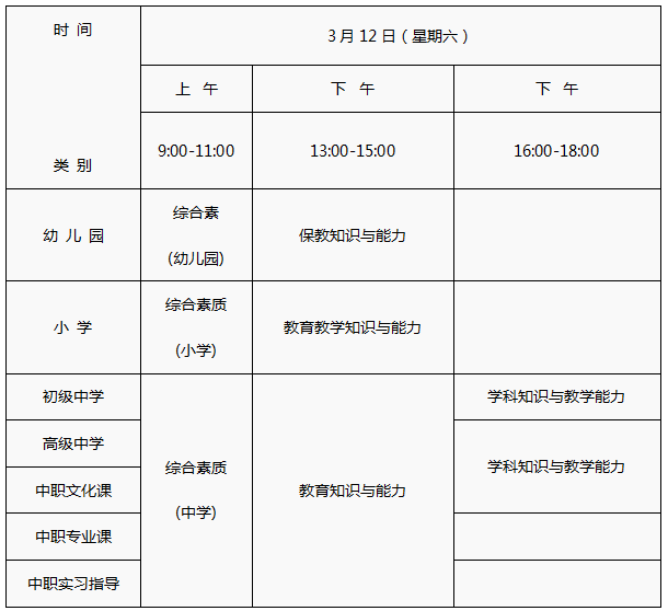 四、2016年上半年中小学教师资格考试笔试日程安排表