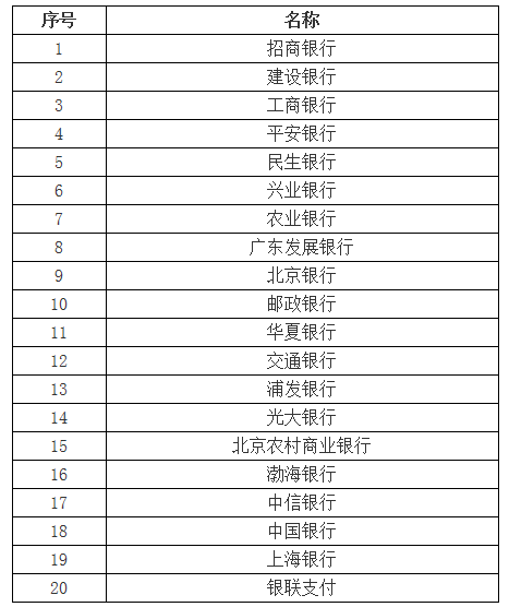 附件2:中小学教师资格考试笔试报名网上支付银行列表