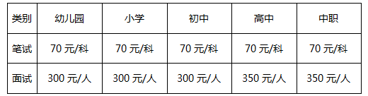 根据海南省物价局、海南省财政厅琼价费管[2015]302号文件,海南省中小学教师资格考试收费标准如下: