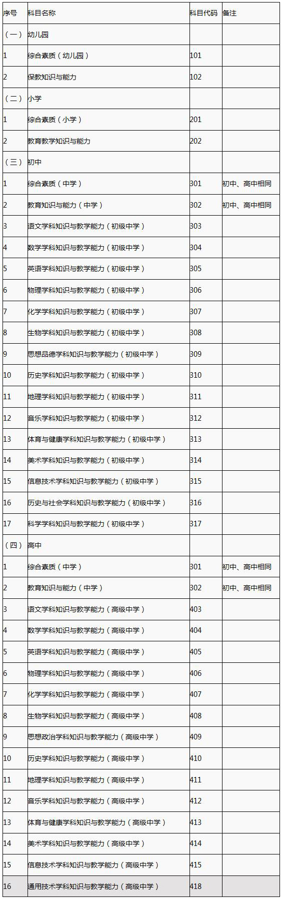 (一)笔试报考学段及科目