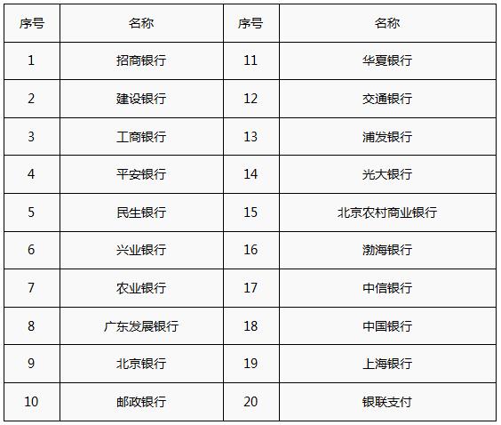 4.报名在线支付银行列表