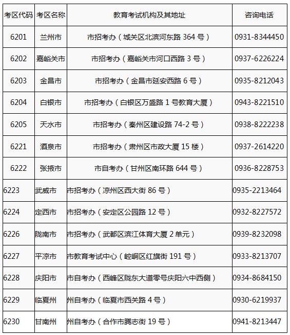 5.全省各考区教育考试机构地址及联系电话