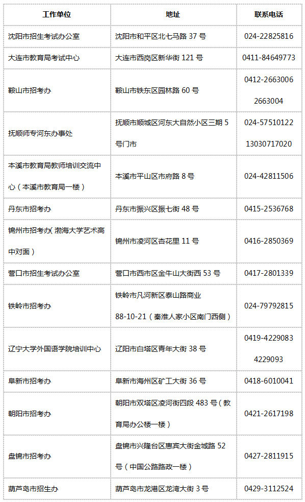 七、辽宁省各考区教育考试机构地址及联系电话