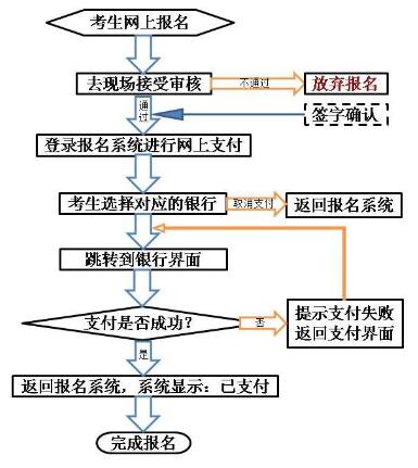 第五步,缴费。现场审核通过后,网上缴费确认截至日期前,考生可再次登录NTCE网上报名系统,查看审核结果并按照系统提示进行在线支付考试费(附面试网报在线支付流程图及在线支付银行列表)。缴费后考生可在网上报名系统中查询报名是否成功。未经审核或审核不通过的考生,不能网上支付考试费。逾期未在网上缴纳考试费的考生,报名系统将视其为放弃报考,并自动注销该生当次报考信息。