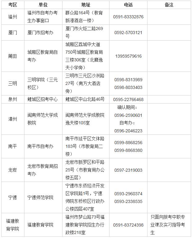 (四)凡报考中职专业课和中职实习指导教师资格的考生需在网报时选择“福建教育学院”考区,现场确认点安排在福建教育学院。